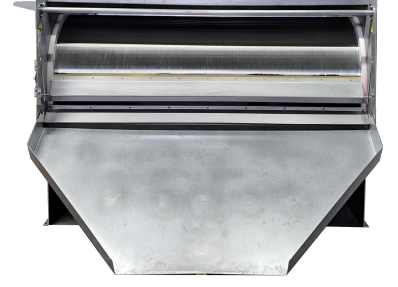 Self-cleaning rotating drum filter for continuous solids removal from industrial wastewater.