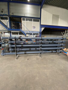 In the WPF flocculator, mixing energy for flocculation is obtained by turbulence in the mixing unit and pipe system. A coagulant is dosed to the raw water at the inlet, followed immediately by a mixing unit for thorough blending. The reaction completes in the pipe following the mixing unit.