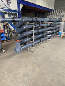The flocculator can be equipped with additional fittings for chemical neutralisation dosing, dissolved air dosing, and inline pH measurement and control with automatic caustic pump regulation.